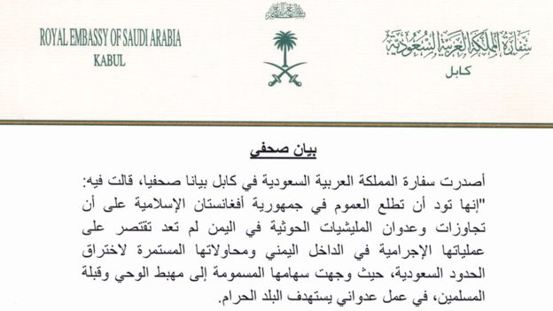 در خبرنامه ای که روز گذشته از سوی این سفارت منتشر و خطاب به شهروندان افغانستان نوشته شده که حوثی ها با موشک به شهر مکه “نزول گاه وحی و قبله مسلمانان” حمله کرده اند.